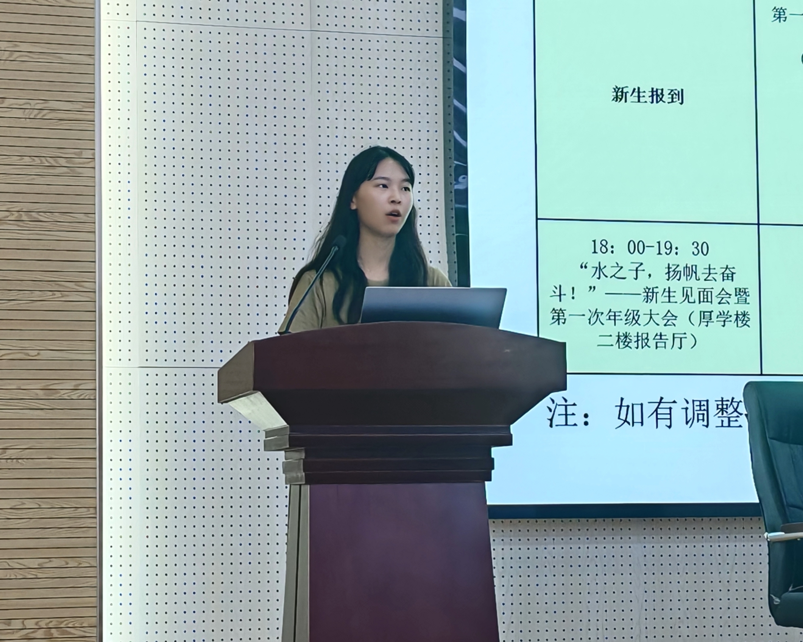 2024年9月8号晚,bv伟德国际19462024级本科生第一次年级大会在厚学报告厅顺利召开,会议由年级辅导员韦语涵、吴晓芬主持。