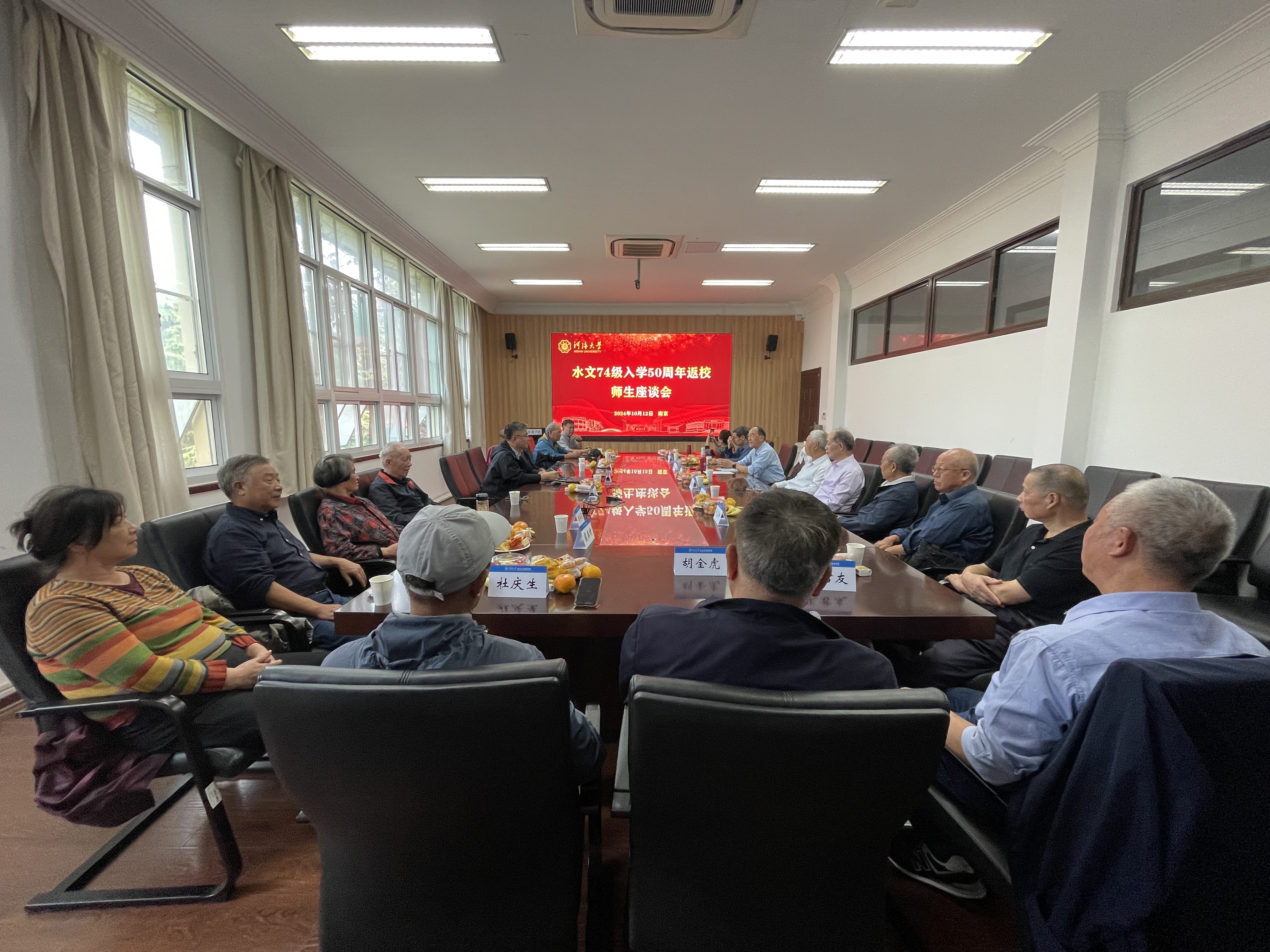 10月12日下午,我院(原华东水利学院)水文专业74级近20位校友重返母校,在西康路校区工程馆303举行师生座谈会。学院党委书记石朋教授、副院长任黎教授,以及时任班主任、现年九十岁高龄的林季烽老师参加座谈会。