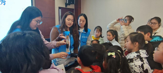 “原来污水变清需要这么多步骤!”活动现场,志愿者们设计的净水器装置演示实验引发阵阵惊叹。通过分层过滤材料模拟污水处理流程,孩子们亲手操作并观察水质变化,直观理解物理过滤与化学净化的原理。实验过程中,志愿者以生活污水为例,引导孩子们思考日常用水习惯对环境的影响,鼓励他们从“节水小行动”做起,争当“护水小卫士”。
