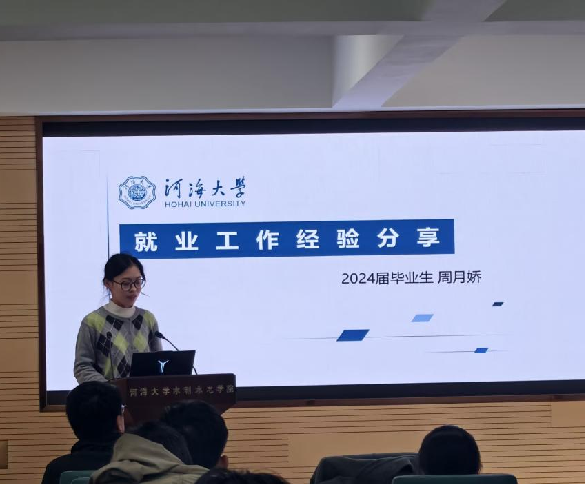 为庆祝伟德bv1946建校110周年,帮助同学解答就业困惑、明晰职业方向,推动毕业生高质量就业。校研究生会联合水文院和水电院于近日开展“共促就业,引航未来”就业经验专题分享会。本次活动邀请了2024届水文学及水资源专业校友周月娇,现就职于江苏省水文水资源勘测局水情科以及2021届水力学及河流动力学专业校友张宇,就职于水利部交通运输部国家能源局南京水利科学研究院,为同学们作本次分享。