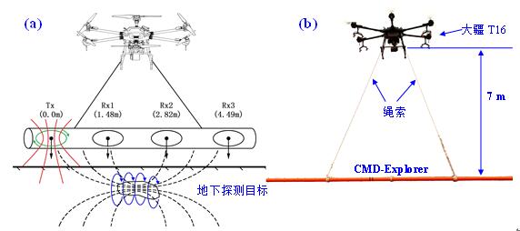 图 1 无人机载频域电磁仪设计草图(a)及原型机(b)