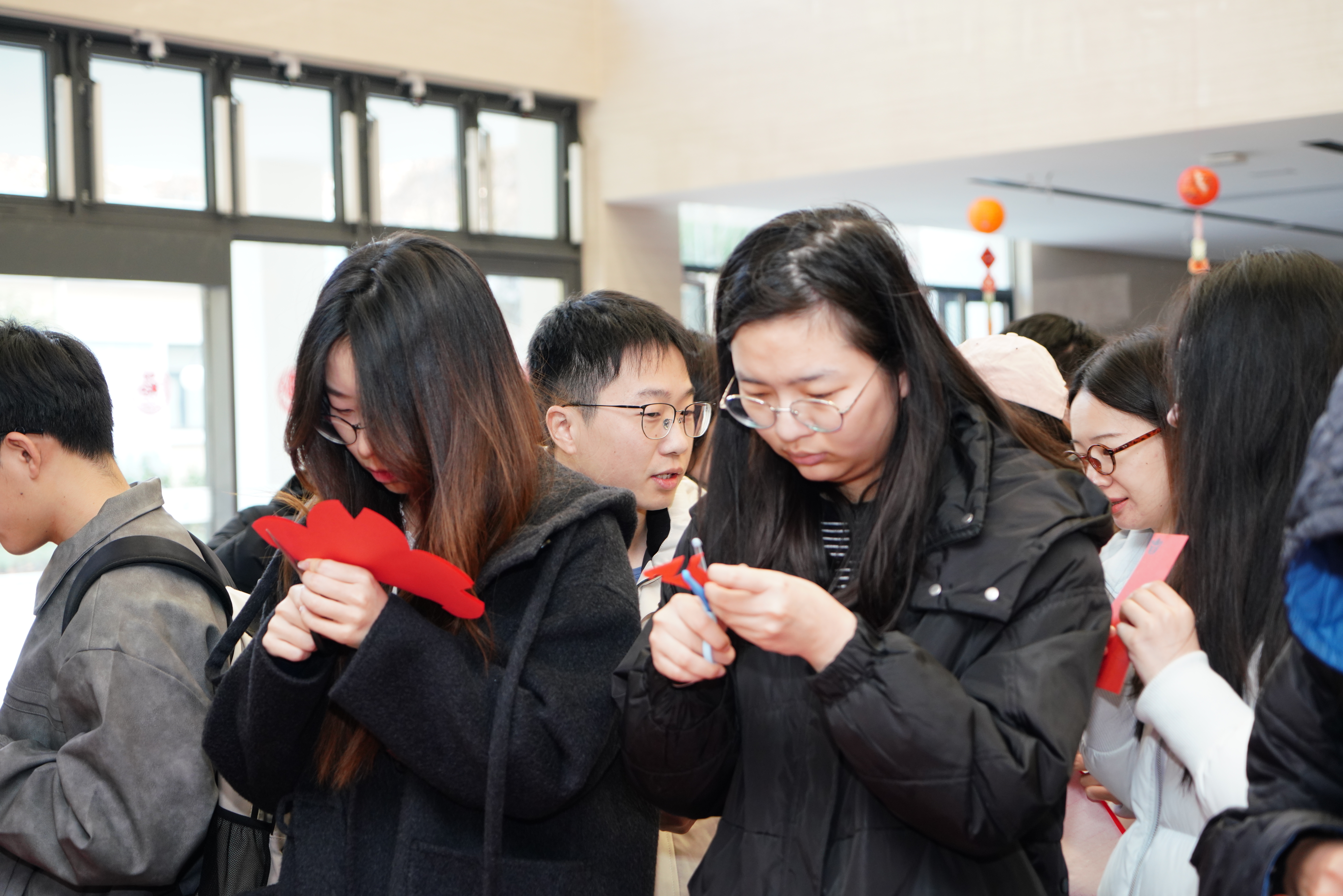 本次活动以新年游园为载体,设置“对答如流”、“红色记忆”、“翰墨迎春”、“投壶纳福”、“巧剪生花”、“新声寄语”六个环节。师生通过知识问答、经典红色场景辨认等形式,强化理论武装,筑牢信仰根基。“翰墨迎春”环节,师生执笔书写春联与“福”字,传递新春祝福;“投壶纳福”与“巧剪生花”则让大家在传统游戏与剪纸艺术中亲身体验中华文化的魅力。现场气氛热烈、年味浓郁,心愿墙上贴满了师生们对过去一年的总结与新年的展望,传递出真挚的期盼与奋进的决心。