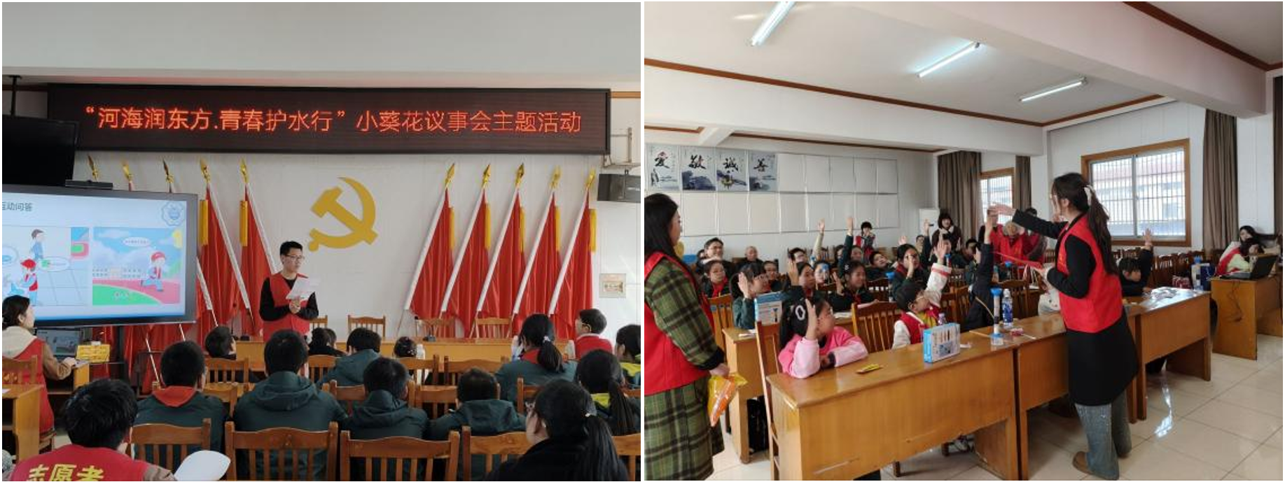 为迎接第三十四届 “世界水日”,广泛普及节水知识、培育青少年节水护水意识,近日,bv伟德国际1946青年志愿者协会联合东城街道东方社区、小红妈爱心社,在东方社区二楼会议室举办“河海润东方・青春护水行”小葵花议事会主题活动。活动以学子引领、少儿议事、全民参与为联动模式,引导青少年主动担当社区节水的议事者、践行者与宣传员,助力打造儿童友好、共建共享的社区节水治理新格局。